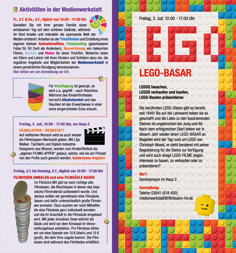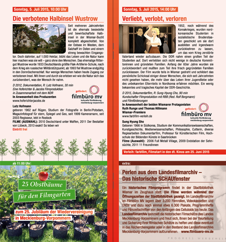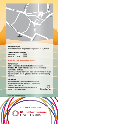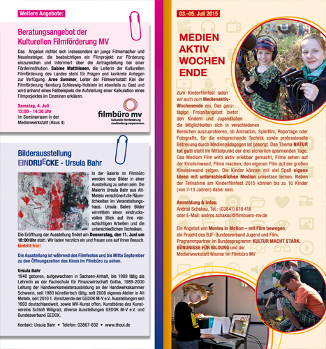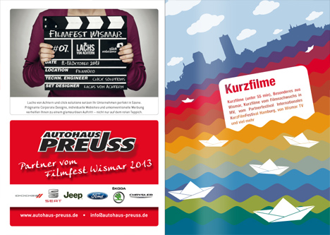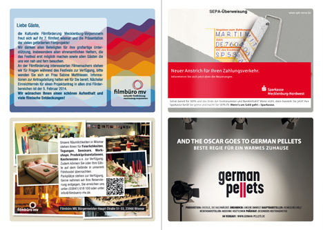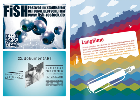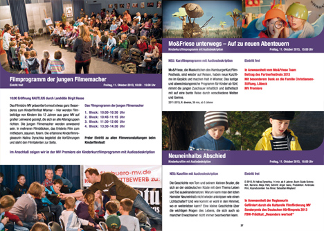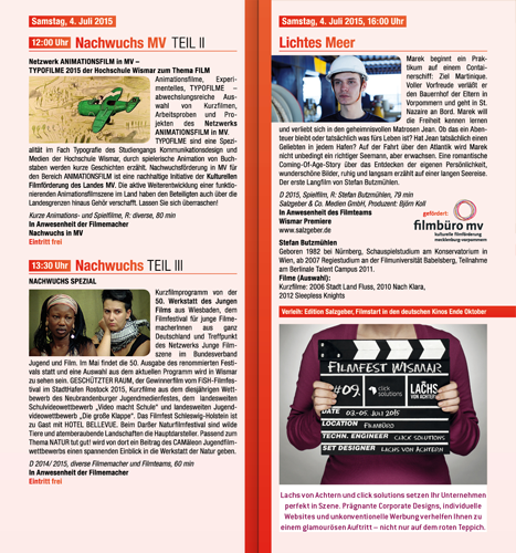 Kataloge, Poster, Faltblätter, Planen uvm. — von 2011 bis 2015 habe ich alljährlich die Drucksachen zum Filmfest in Wismar gestaltet.