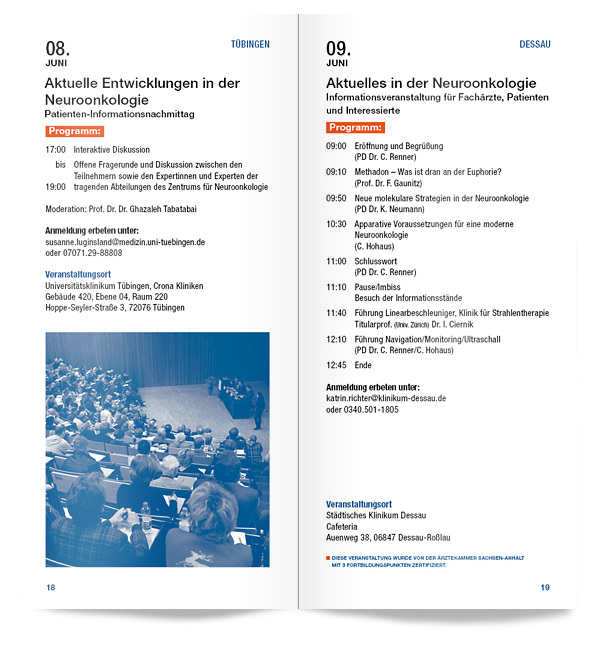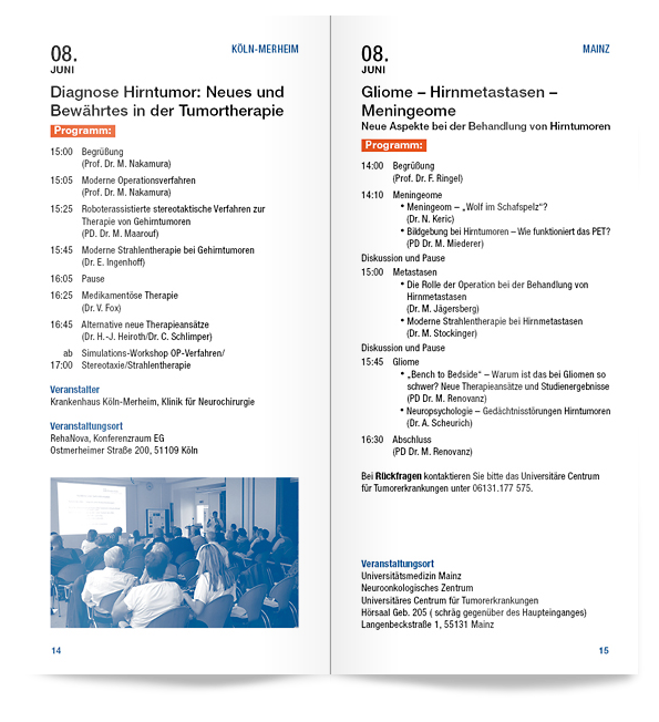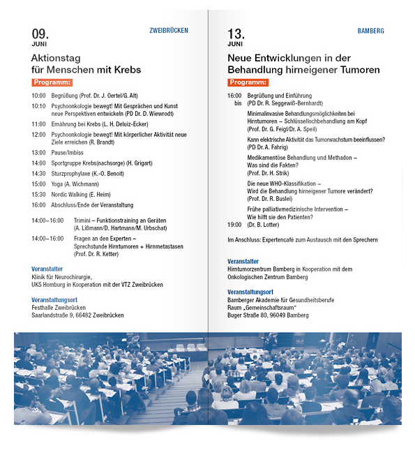 Einladungen, Plakate, Newsletter, Broschüren, Anzeigen uvm. für den gemeinnützigen Verein Deutsche Hirntumorhilfe. (fortlaufend seit 2013)
