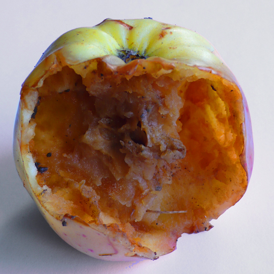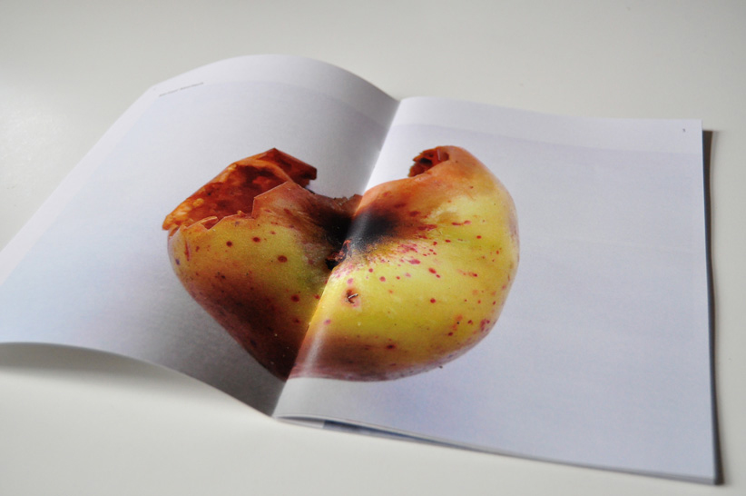 Zwei Fotos aus einer Serie von vergammelten + von Wespen angefressenen Äpfeln in der tollen, non-profit Gartenzeitschrift aus Berlin.
